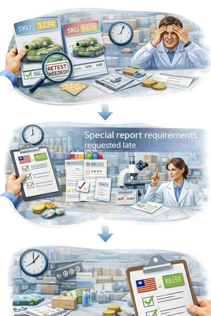 Retesting is rarely caused by the lab. It usually happens when the tested sample no longer matches the version that will be produced or shipped. The simplest rule is: the report must match the shipped version—so key details need to be locked before submission.
