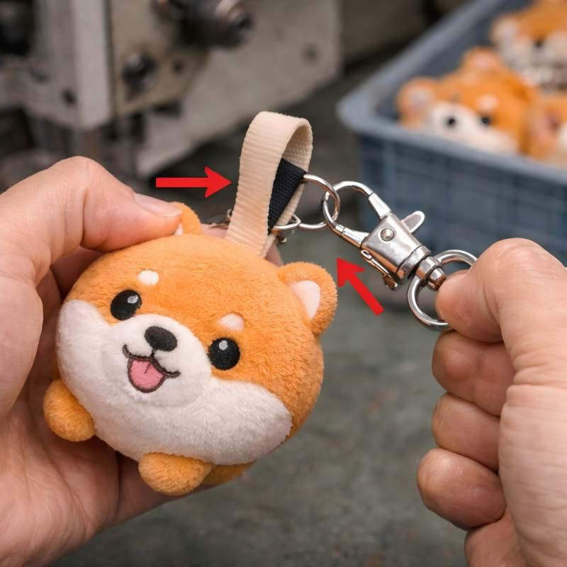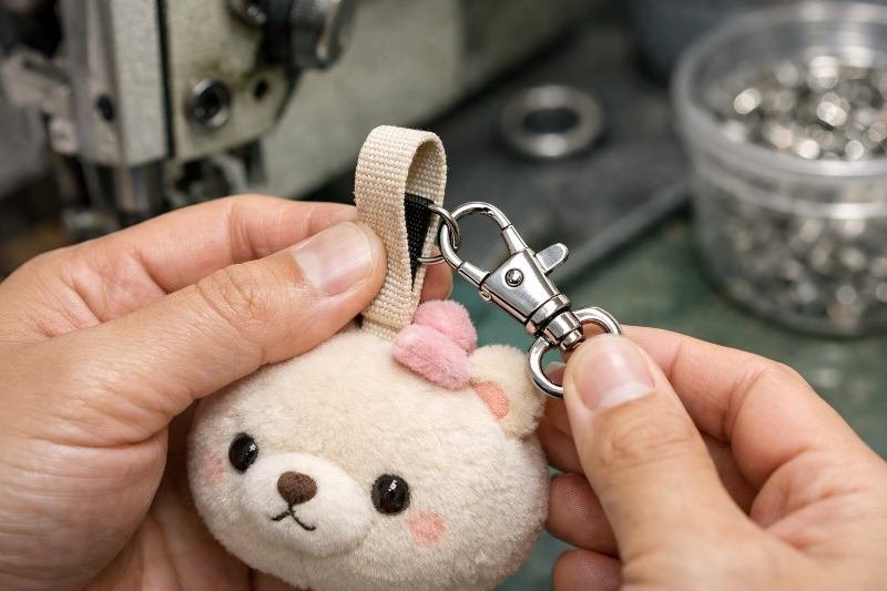 Keychain plush is a small product, so the hardware becomes a big part of the perceived value. Customers touch the ring, clip, clasp, and strap every time they use it—then judge the whole item based on how it feels, how it scratches, how it sounds, and whether it snags. A “cute plush” with cheap-feeling hardware reads as low-end instantly.