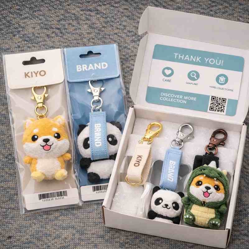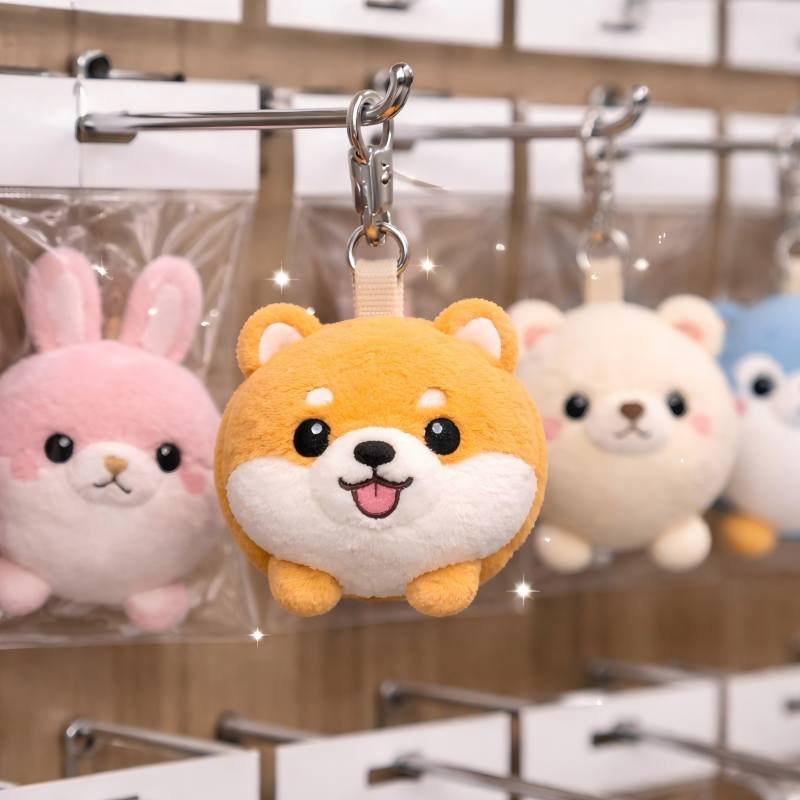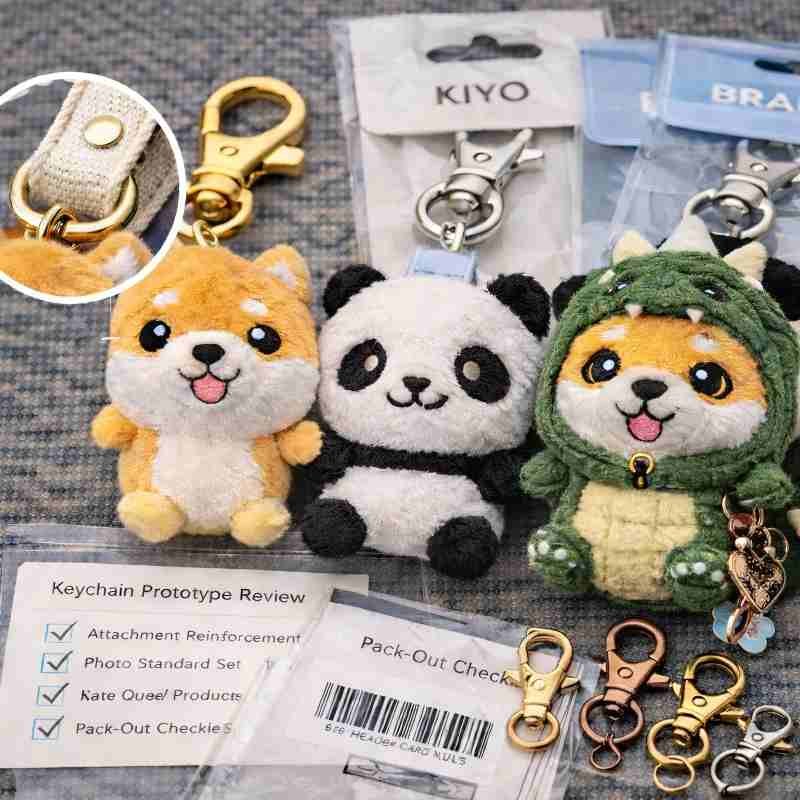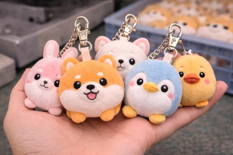 A plush keychain is judged differently from a standard plush toy. It must stay cute after constant friction, survive being pulled by the ring, look clean at a small size, and arrive ready to hang on pegs or ship as a bundle. The difference between “looks good” and “works in real life” is attachment engineering, small-part discipline, and packaging that fits your channel.
