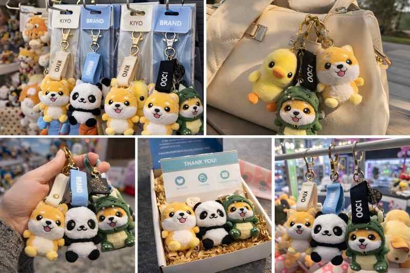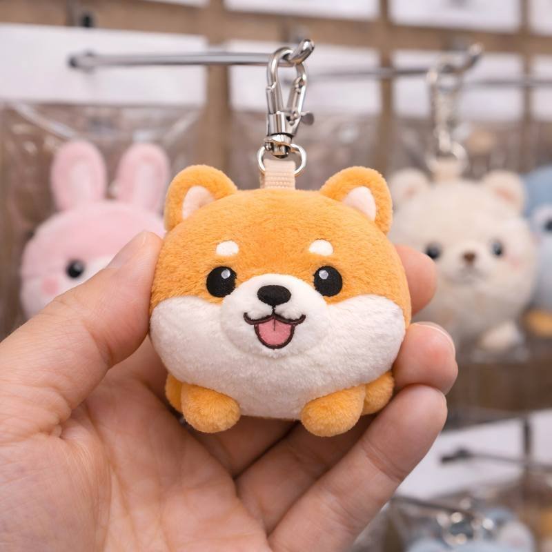 Plush keychains · bag charms · clip-ons · phone charms · mini mascots · retail hang-sell · DTC bundles