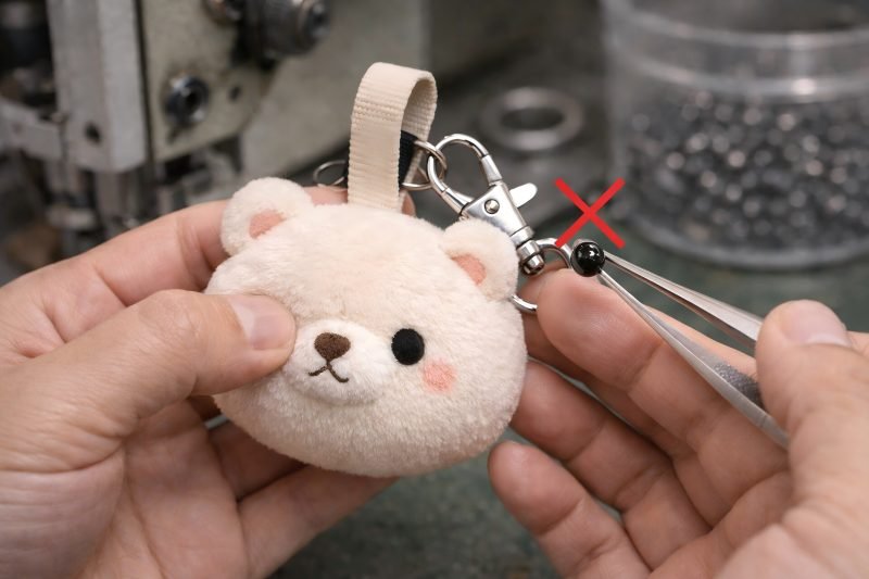 What brands look for: the connection feels secure, doesn’t wobble, doesn’t distort the plush, and keeps the keychain front-facing.