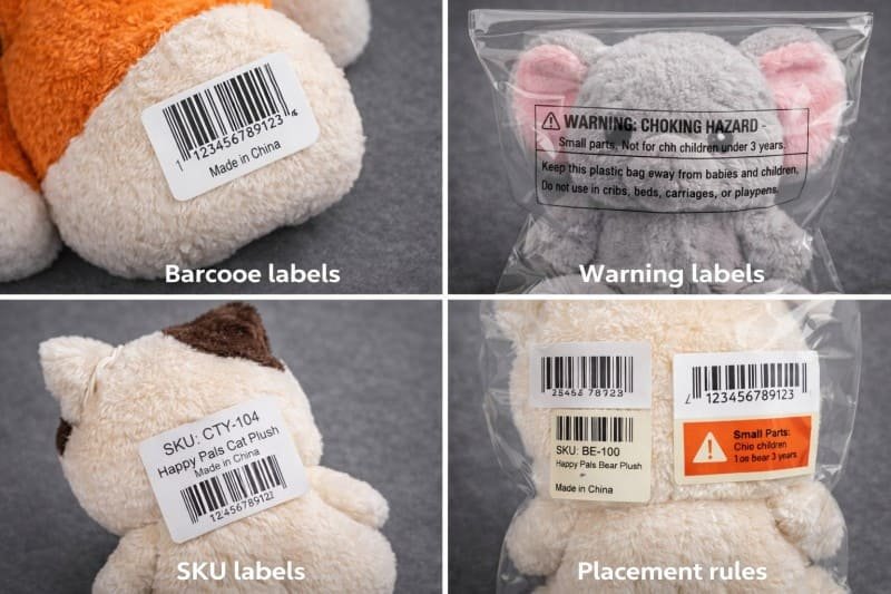 Barcode labels, warning labels, SKU labels, placement rules based on approved templates.