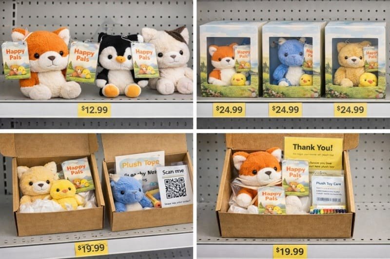Bundling main plush + accessories + gifts + cards into repeatable sets with a pack-out BOM.