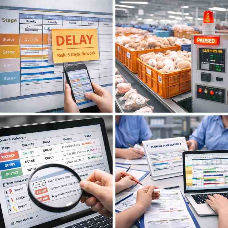 “Making progress” is not useful unless it answers three practical questions: where the order is right now, what can block the next stage, and whether the ship window is still protected. Progress visibility prevents the most common failure pattern: discovering drift only when packing is already under deadline pressure.