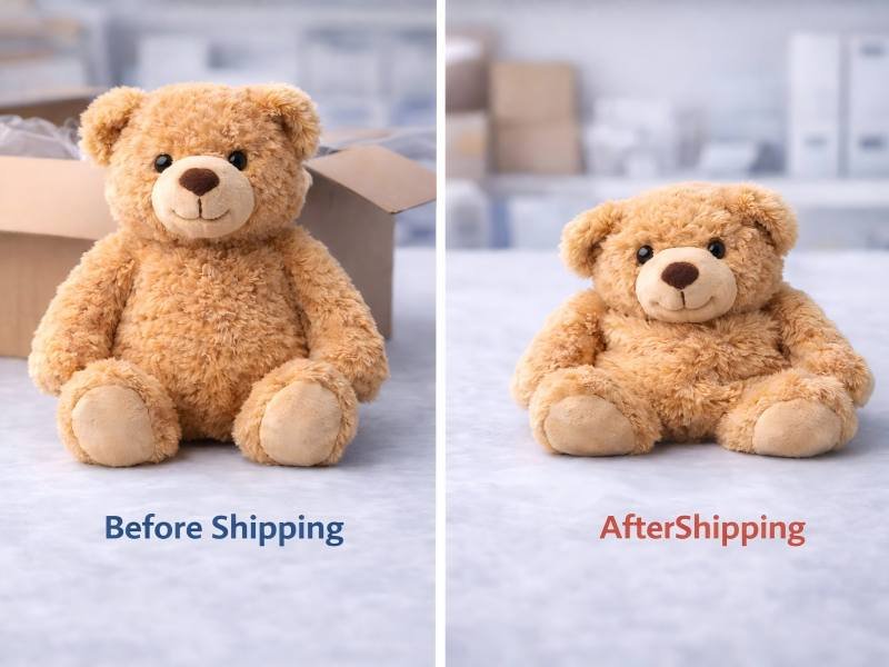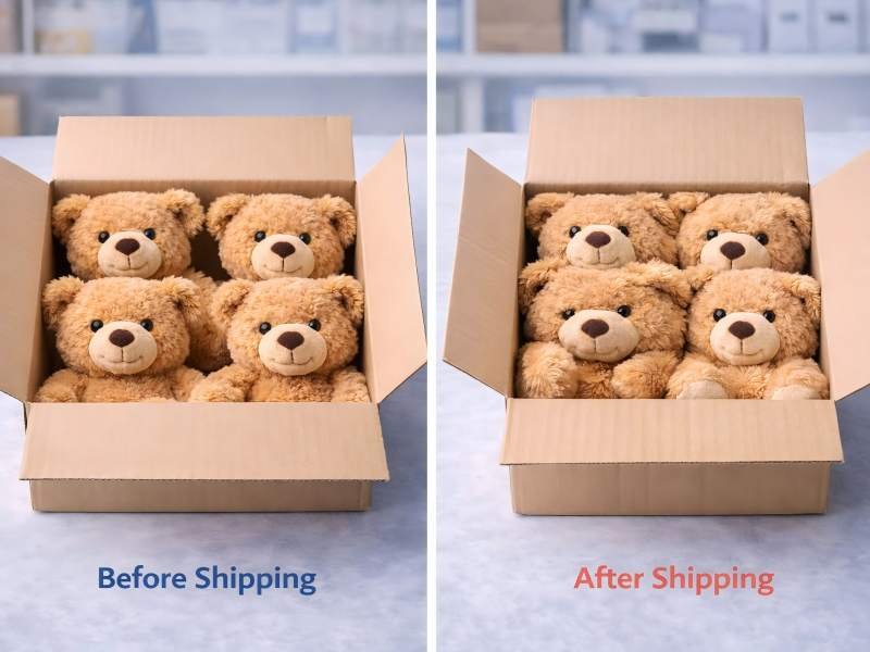 Stuffing volume and compression behavior directly impact packaging size and shipping efficiency. By planning internal fill density and rebound characteristics, plush products can be packed predictably, shipped efficiently, and recover their intended shape after transit—without surprises at delivery.
