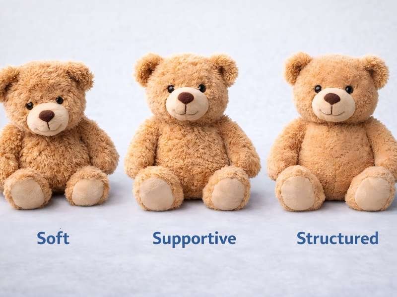 Often yes. Structured or firm feel can be achieved through defined stuffing zones and internal support planning. Feasibility depends on size, pose, and intended use, which are reviewed before sampling.