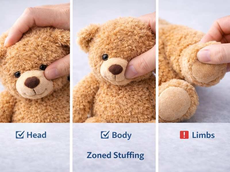 Most feel and shape issues originate from uncontrolled stuffing—not fabric or sewing.