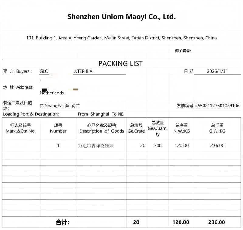 Packing List (PL)