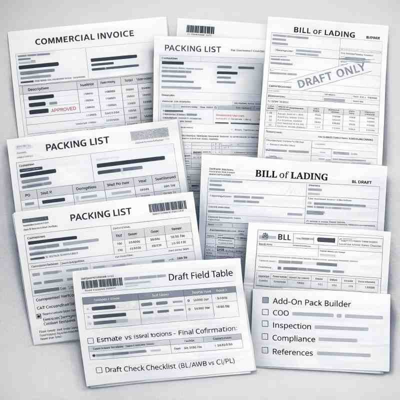 Shipping documents come from multiple parties. Buyers confirm consignee and import requirements; the factory prepares commercial documents and packing data; the forwarder/carrier issues transport documents; and brokers file entry based on those documents. This matrix prevents gaps and delays.